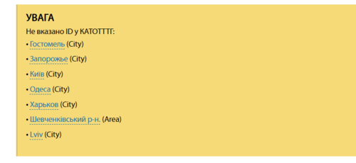 На головну сторінку можна виводити повідомлення щодо адресних об'єктів у яких не обрано ID КАТОТТГ
