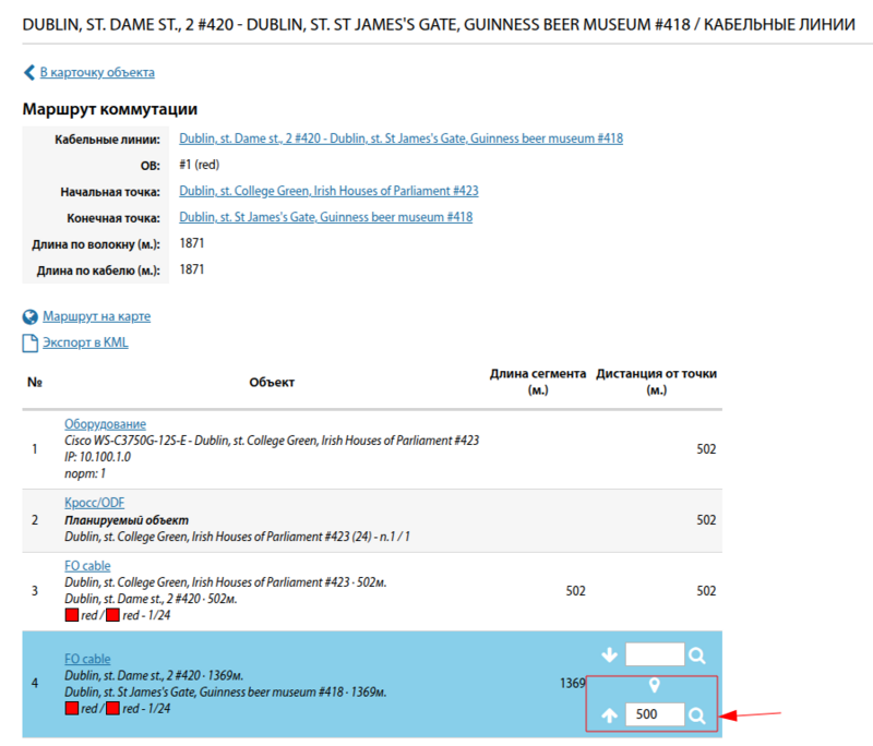 Для кабельных линий добавлена возможность отображения точки на карте по введенному метражу на маршруте (например для поиска точки обрыва)