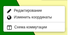 На карте покрытия для кабельных линий добавлено контекстное меню правой кнопкой мыши (редактирование, изменение координат)
