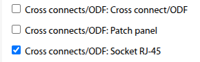 "Cross connects/ODFs" are unified in functionality with "Patch panels" and "Sockets RJ-45"