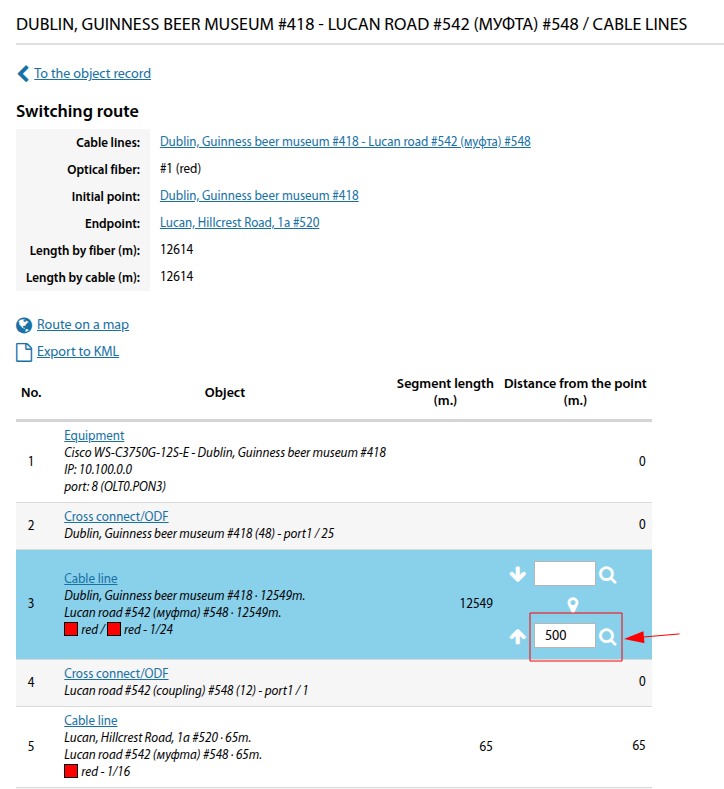 The cable line starts and ends at the infrastructure objects. In this way on coverage map you can see the route of this line (for those cable lines that have the map display set up) and in case the line does not follow a straight line between the start and end point - change this route.