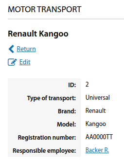 Motor transport widget on the main page (both in general and for your own motor transport)