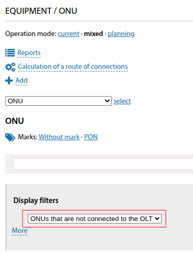 Report added to the ONU list "ONUs that are not connected to the OLT"