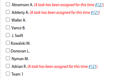 When creating a task and assigning an employee, a check is performed to ensure the employee is not already assigned to another task at that time